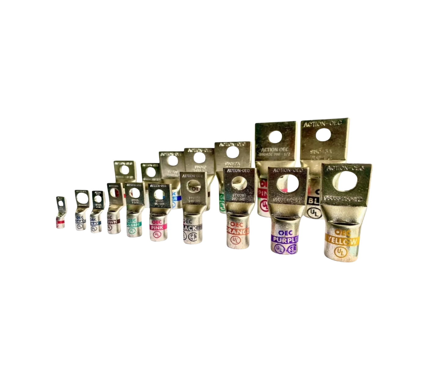 Tanto Terminales como Conectores están Certificados UL-486, Fabricados con Cobre (EN13600), estañados para proteger contra la corrosión, fabricado con aleaciones de aluminio de alta resistencia 6061-T6, utilizado para conductores de cobre y aluminio, electroestañado para una baja resistencia de contacto y protección contra la corrosión cuando se utiliza con alambre de cobre, clasificado 600 voltios -90°C.